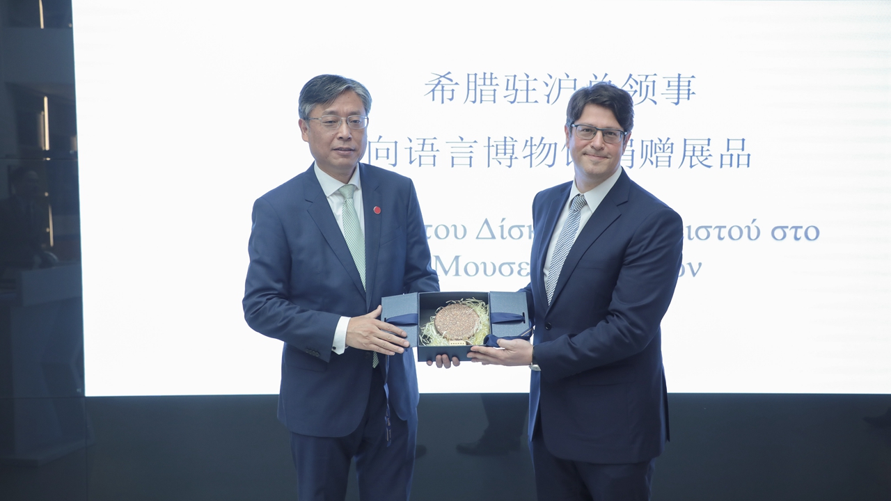 กงสุลใหญ่แห่งสาธารณรัฐเฮลเลนิก ณ นครเซี่ยงไฮ้ มอบสิ่งของจัดแสดงให้กับพิพิธภัณฑ์ภาษา